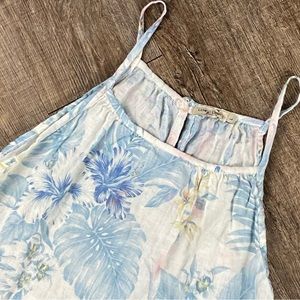 Lungo L'Arno Dress Women L White 100% Linen Floral Thin Straps Mini Tropical