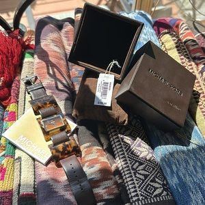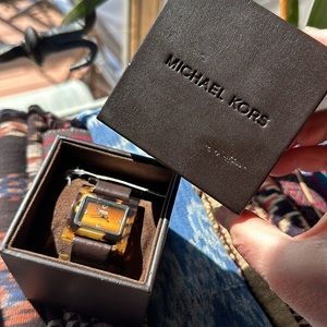Michael Kors tortoise w brown leather band watch. Vintage. Brand new battery!!