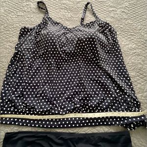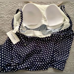 Brand new with original tags, never worn. Cute polka dot top that blousons at the bottom with a side tie detail. Adjustable straps. Very cute suite. Size on the tag says 24w but the size chart shows US size would be a 20W. Comes from a smoke free home.