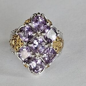 Gorgeous & loaded with lots of genuine amethysts. There's so much detail along the band, including 14k yellow gold. It grabs attention! Stamped STS 925
