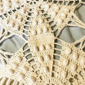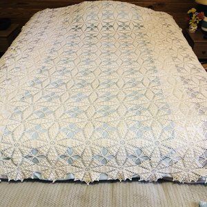 Antique Vintage Crochet Bed Spread Coverlet Tablecloth Ecru 92 x 80"