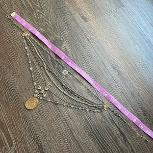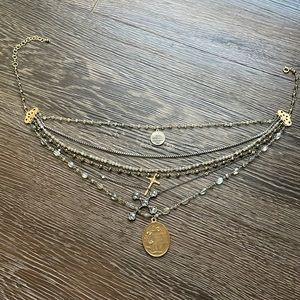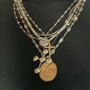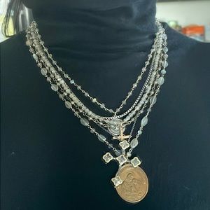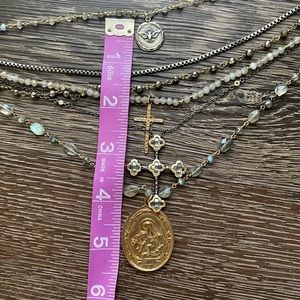 Sold💎cross chain layered necklace labradorite gold silver gunmetal coin pendent