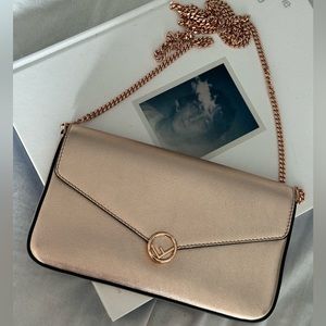 Authentic FENDI Vitello Laminato F is Fendi Envelope Wallet on Chain Rame Bag