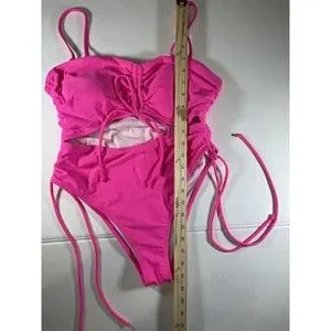 California Waves Cutout One-Piece Swimsuit, Neon Pink, Large, New