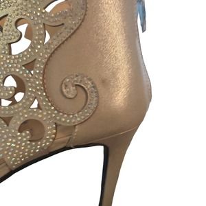 Palizzio Open Toe Rhinestone Heel Edolie Silver Bootie Size 10 W New