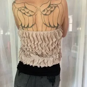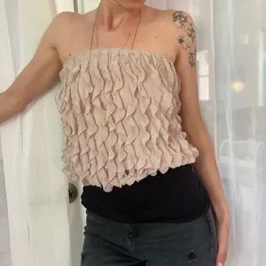 Tube top lacy frills with black bodice waist. Feminine lacy tube top
