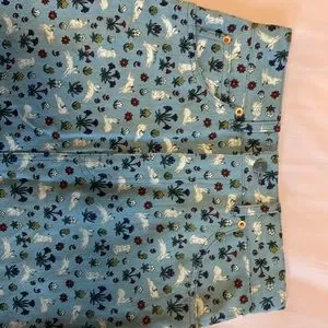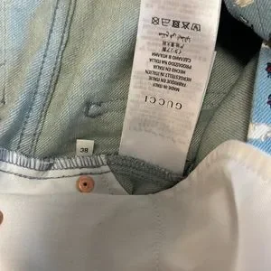 Never worn! Super cute printed denim skirt by gucci. Size 38. Waist: 14.5inches flat / length: 18.5 inches flat