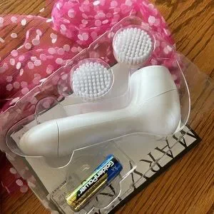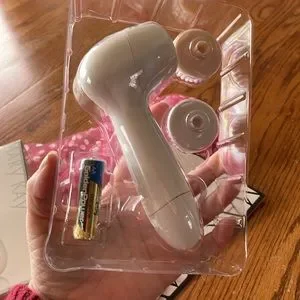 Mary Kay Skinvigorate Cleaning Brush, included:brush, brush heads and AA batteries. Dermatologist tested. Suitable for cleaning sensitive skin.