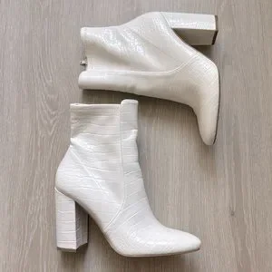 Croc embossed white patent faux leather booties. Minimal wear.