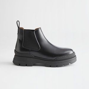 Smooth Leather Chelsea Boots with chunky technical soles, elasticated sides and a pull-tab at the back. Round-toe, Height of sole: 5cm / 1.9" (Lining: Leather 100% Upper part: Leather 100% Sole: Thermoplastic rubber 100%)