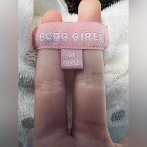 This is a white, fuzzy fabric pull-over hoodie with gold spot details made by BCBG Girls. This jacket is new and has never been worn, however is lacking the tag. This is a children’s hoodie in a size medium, the full length being ~32in (measured from the top of the hood to the bottom of the jacket) || The fabric of the hoodie is very soft, cozy, however isn’t very stretchy.