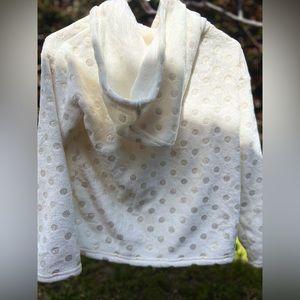 BCBG- White Fuzzy Hooded Pull Over Jacket w/ Gold Spots || Kids M
