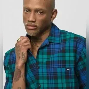Vans 💯% cotton Anaheim Woven loose Fit Button Up Black/ Blue Size M, Size L
