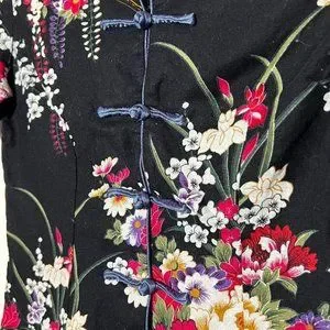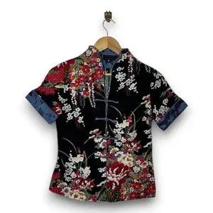 Womens Cotton Linen Short Sleeve Chinese Shirt with Flower Print Size M