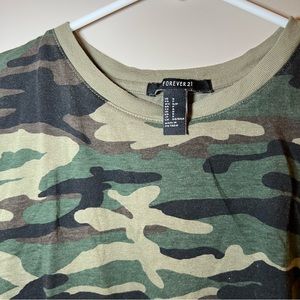 This is a new condition green camo t-shirt size S. The shirt features a classic camo print in shades of green and is made from comfortable and breathable fabric. Perfect for everyday wear, this shirt is a great addition to any casual outfit.