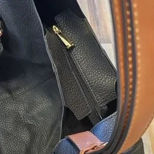 New Black Zip Tote Bag with Brown Handle and a Matching Coin Purse.