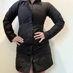 The North Face jacket! Size small. Waterproof breathable HyVent and fully taped seams on the shell protect you from the rain, snow, and hail. It's lightweight but if you want it to be warmer... I have another North Face jacket listed that can zip into this one. (see last photo)