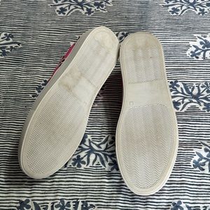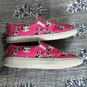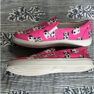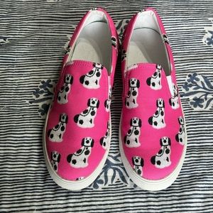These slip on sneakers are so fun! Custom printed sneakers with black and white Staffordshire dogs. Only worn once.