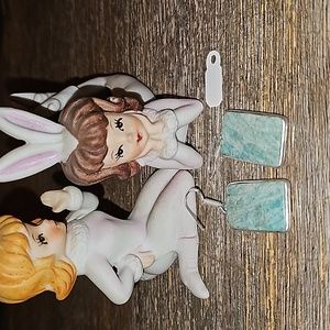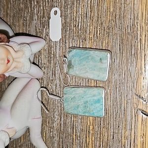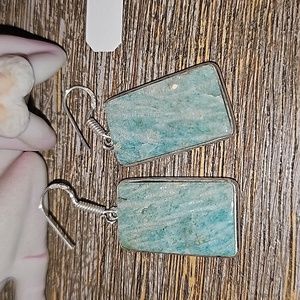 love these amazonite rectangle earrings in a simple sterling silver setting.. stamped on the ear wires.. about 1 inch before the ear wires.. x .50 wide..matte on the back.. shiny on the front... great gift 🎁
