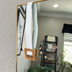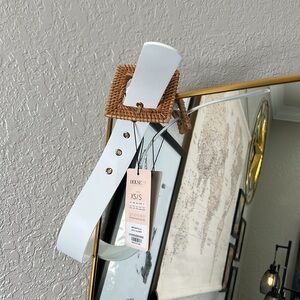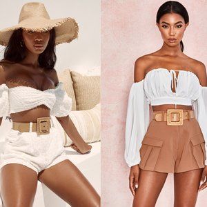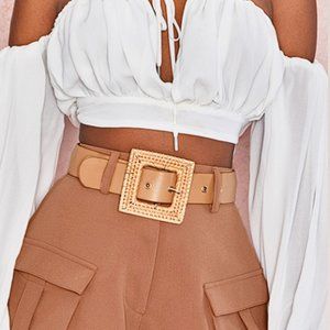 This sold out gem is the ultra versatile belt you need for Summer. It has a tan vegan leather belt and large square rattan buckle. We love this on fresh white shorts or round a blowy maxi dress.