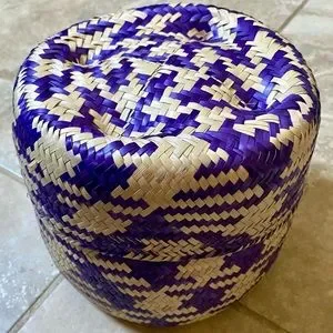 Handmade Handwoven Palm Leaf Lidded Basket.
