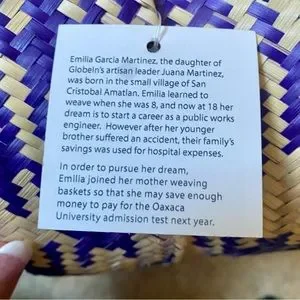 In purplish-blue & natural weave.