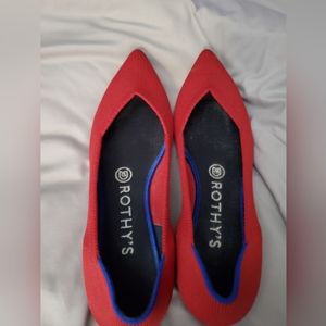 Gorgeous red rothys. Stretchy textile upper size 7.5 WHICH IS A 6.5. They run a size smaller. I've found this with both pairs I've had and my daughter has too. If you're a 6.5, these will fit you perfectly. These have only been worn a couple times and never washed.