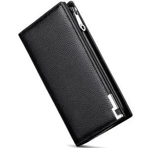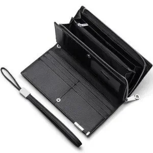 New Long Black Leather Wallet for Men Zippered Leather Wallet RFID