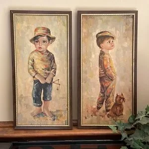 Vintage Prints by M. Medeiros Portrait “Jacky Boy” & “Not Guilty” Framed