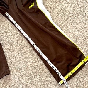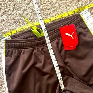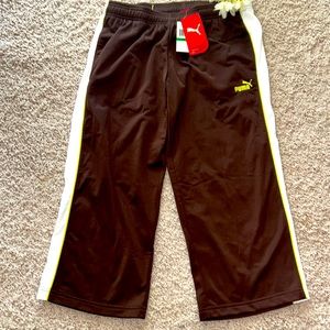 Brand NEW⭐️with Drawstring and side pockets! Capri Length—please see pics for measurements! Mostly Brown with wide WHITE STRIPE down the sides and Bright Lime Green color accents either side of white stripe. Drawstring & PUMA Logos are also green.