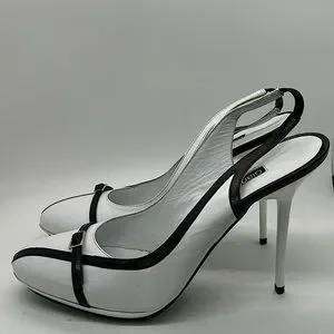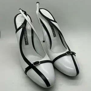 Gianmarco Lorenzi Sexy Black/White Leather Stiletto Heels Shoes **Size 40** 🔥🔥