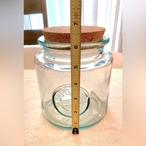 (2) Recycled glass jars with cork tops. Selling 2 total.