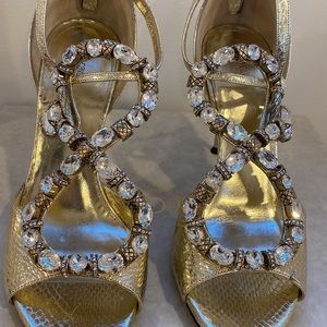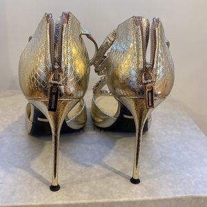 Roberto Cavalli, exotic lizard leather light gold with real Swarovski crystals in design, size 39, used