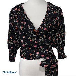 Ganni Paradise Elm Floral Georgette Wrap Top Surplus Wrap Top Small NEW
