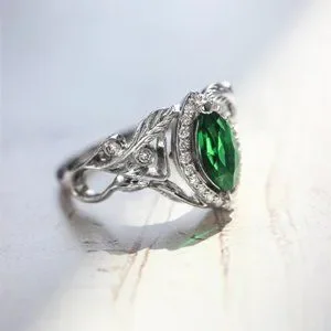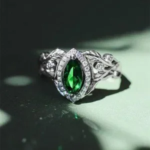 💞Emerald Marquis Gem Leaf Weave Silver Noble Rings for Women, MARR9098