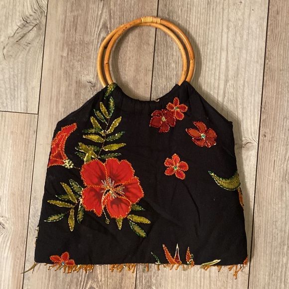 Beaded Nomadic Trader Purse w Bamboo Handles