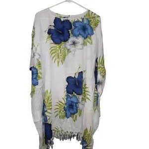 Aloha Wear Hawaiian One Size Fits Yellow Blue HIbiscus Flower Swimsuit Cover Up