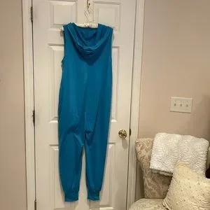 Oversized hooded jumpsuit with front top buttons side pockets and cropped ankle