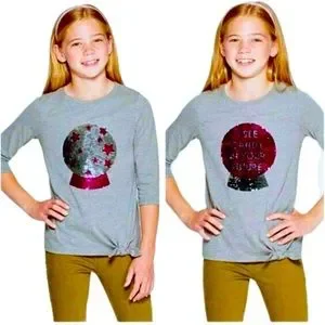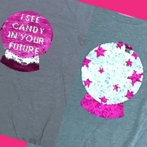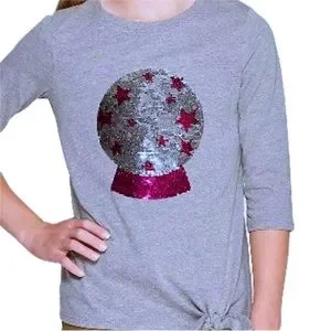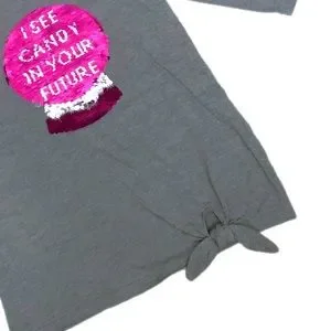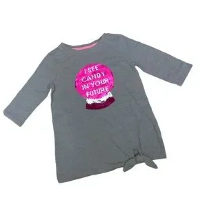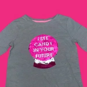 This fun Cat & Jack 3/4 sleeve, gray & pink flip sequin crystal ball "I see candy in your future" is sure to be a favorite this Halloween. Heather gray shirt w/ silver & pink sequence crystal ball that has reversible/flip design, cute side knot at bottom front. NWT