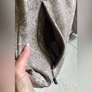 - Color: Brown & Creme random lines all over the outside of the jacket.