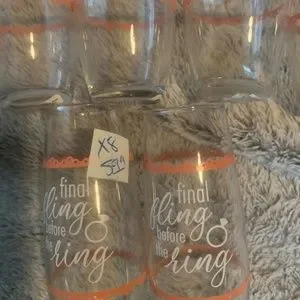 4) 7 champagne glasses “last fling before the ring”