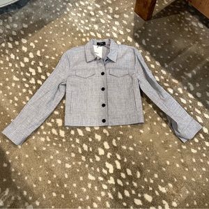 Theory Denim Light JCKT/Long Sleeve Bluet Melange Eco Sharkskin Top. Size S NWT
