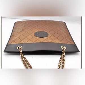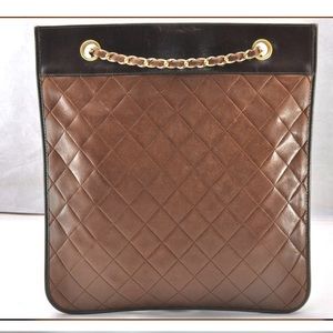 Authentic CHANEL lambskin flat CC mini tote brown and black