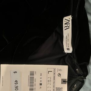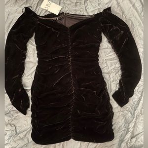 Zara long sleeve black velvet mini dress. Size large. Ruched throughout, sits off the shoulders. Hard to photograph on its own, new with tags never worn