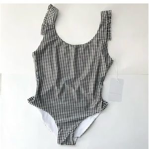 NWT This one piece is for those that want some coverage but still want to feel sexy. The Lagoon Once Piece features a high leg with a low back and a feminine ruffle detail on the shoulder Style Number: NS-8023GL
