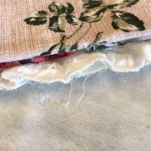 Shabby Chic Rose Garden Eyelette Lace Trimmed Farmhouse Styled Kitchen Towels Set of Two NWT, made of %100 Cotton, Oeko Tex Eco Standards. Trimmed with ivory eyelette lace these pretty rose floral towels will brighten up any kitchen. Has several stray threads at hemline. Please see photos. Botanical design is on towel fronts only, with solid white terrycloth backings. Lovely tailoring by Shabby Chic. Measure 28” x 17.50”. Made in India. Machine washable gentle cold with like colors. Tumble dry low heat. NWT Colors, soft mauve background with pink white and maroon roses and sage green leaf accents.