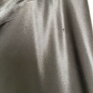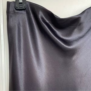 Size medium. Gently rumpled satin lends a liquid loveliness to this slinky skirt that's form fitting and flared, all at once. Good condition with some slight abrasions on fabric.