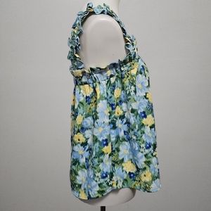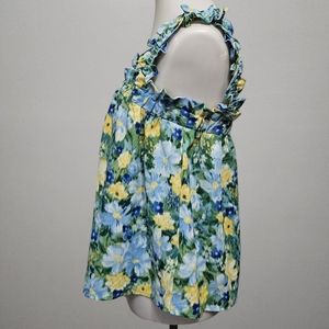 Buckle Blu Pepper Blue & Green Floral Ruched Strap Tank Size Small