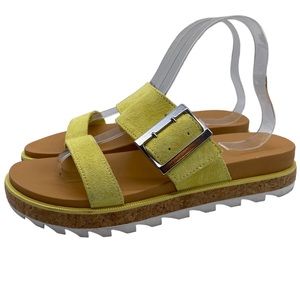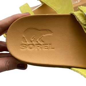 Sorel Sandals Roaming Slide Yellow Suede Leather Casual Chunky Colorful Size 8