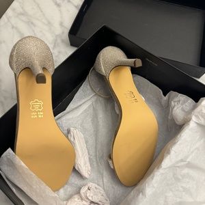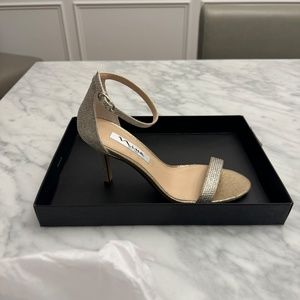 Brand New NINA Women's Gold Glitter Rhinestone Padded Veniza Almond Toe Stiletto